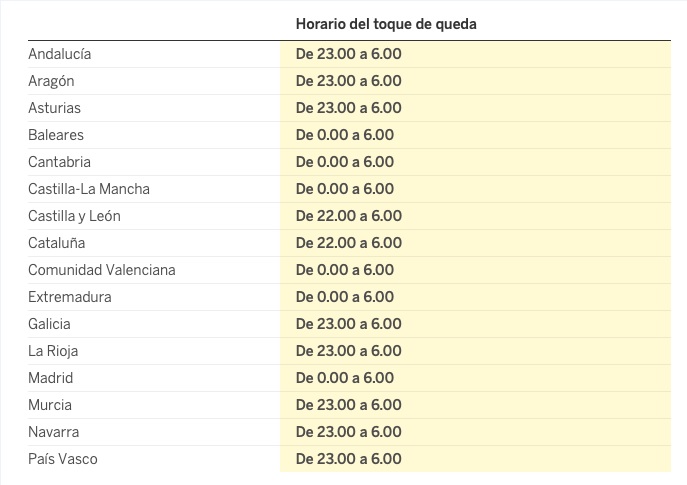 Laajoja liikkumisrajoituksia saatetaan voimaan mm. Kataloniassa ja Madridin seudulla. Säännökset vaihtelevat maakunnittain. Esimerkiksi Valencian seudulla ulkonaliikkumiskielto on voimassa klo 00.00–06.00 ja Kataloniassa 22.00–06.00. Perjantaina säädöksiin tulee tarkennuksia.