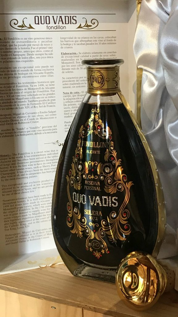 Quo Vadis Fondillón on Bodegas Francisco Gomezin huipputuote ja siitä saa pulittaa reilusti yli 300 euroa. Kuva Jaana Pohjanheimo.