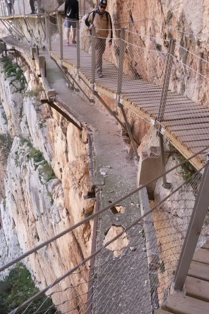 Reitti kulkee välillä maastossa ja välillä vuoren reunusta pitkin noin 100 metrin korkeudessa. Sitä ohjeistetaan kävelemään oikeaa reunaa. Ohjeet saa sekä espanjaksi että englanniksi. Polku on osin puulankuista rakennettu, josta lankkujen välistä näkee maisemat alas. Seinässä kulkee koko ajan kettinki, josta korkeapaikankammoiset voivat pitää kiinni.