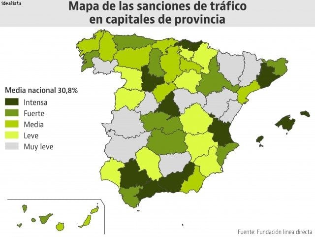 Myös Granada on kärkipäässä sakkotilastoissa. Vähiten sakkoja annetaan pienemmillä paikkakunnilla kuten Cáseres, Badajoz ja Jaén.